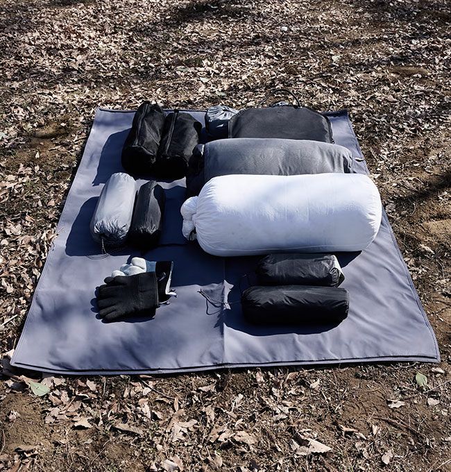 ・半分に折りたたんで中に寝袋や落ち葉などを入れることで、クッションとしても使用可能