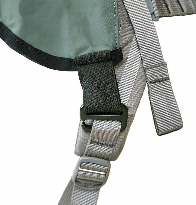 シームテープ、2.5xナイロン素材(通気性あり)、調節可能な内蔵フードにより、霧の朝や突然の雨でもパックと頭部をドライに保つことができるように設計されています。