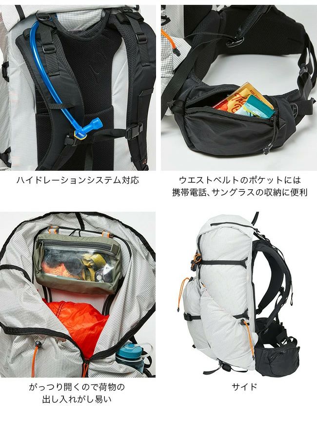 タフさを損なうことなく、複数日の登攀や長時間のスルーハイクの負担を軽減しながら、収納機能が豊富で、軽快な行動を可能にします。