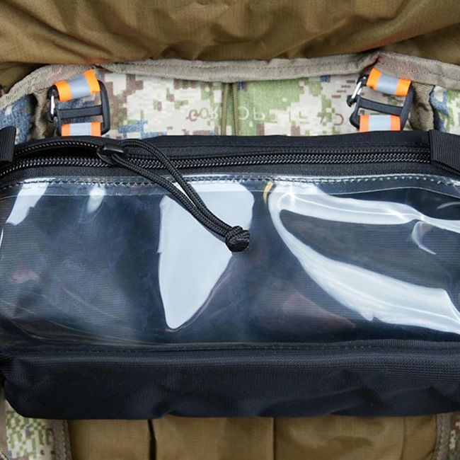 救急箱やポケットナイフ、その他の小物を収納するのに最適なこのバックカントリー用ポーチは、TPUウィンドウを採用しているので、手を伸ばす前に中身を確認することができます。