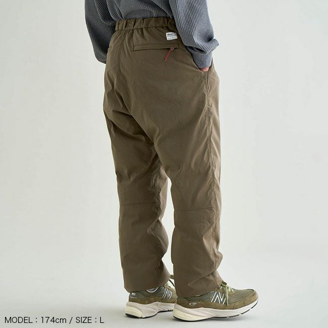 冬のキャンプシーンの人気アイテムである、HINOC DOWN PANTSからより動きやすさを求めたハイブリッドモデル。