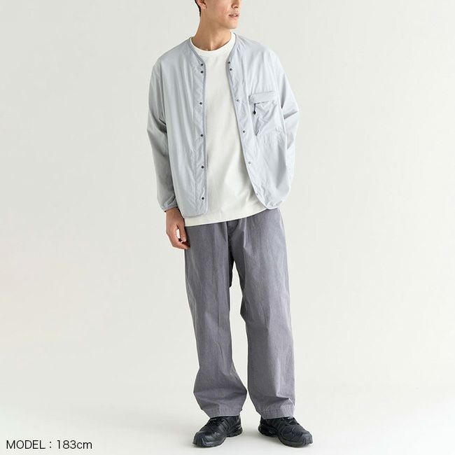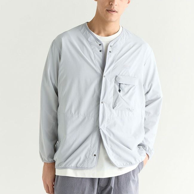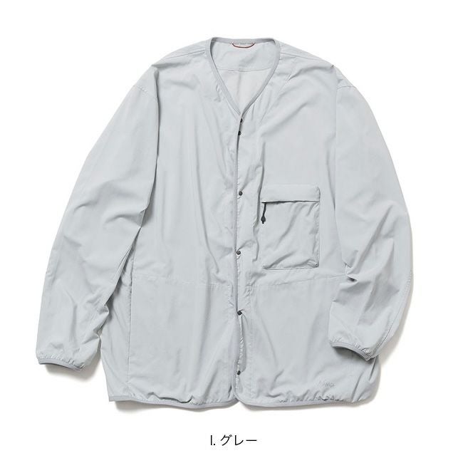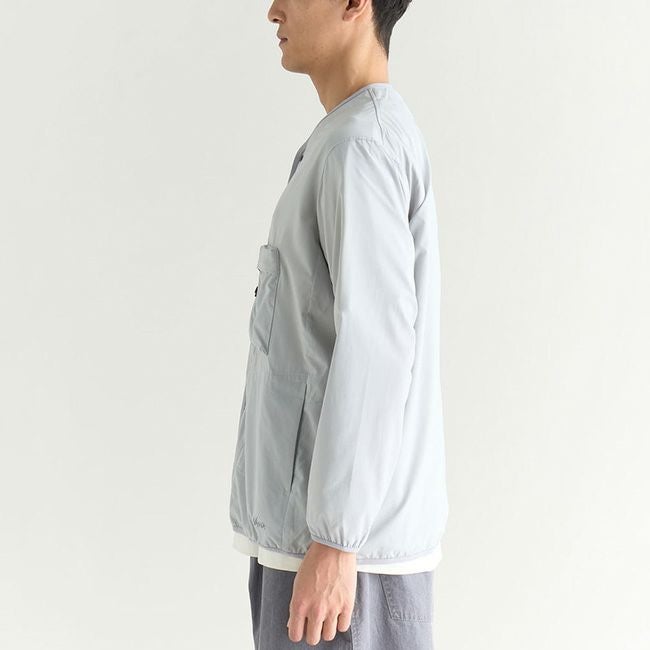軽さと強度を兼ね備えた、パッカブル仕様のノーカラーカーディガン