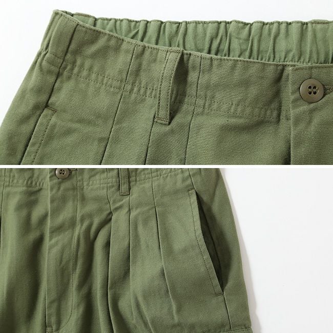 日本で古くから作業着として多くの人に着用され続けてきた「もんぺ」にカーゴパンツの要素を加えています。