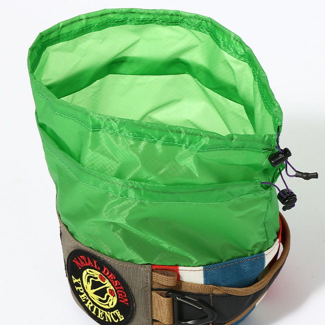 上部分は巾着型になっているので出し入れがしやすく、二段階で収納量を調整できるので用途に合わせて使えます。