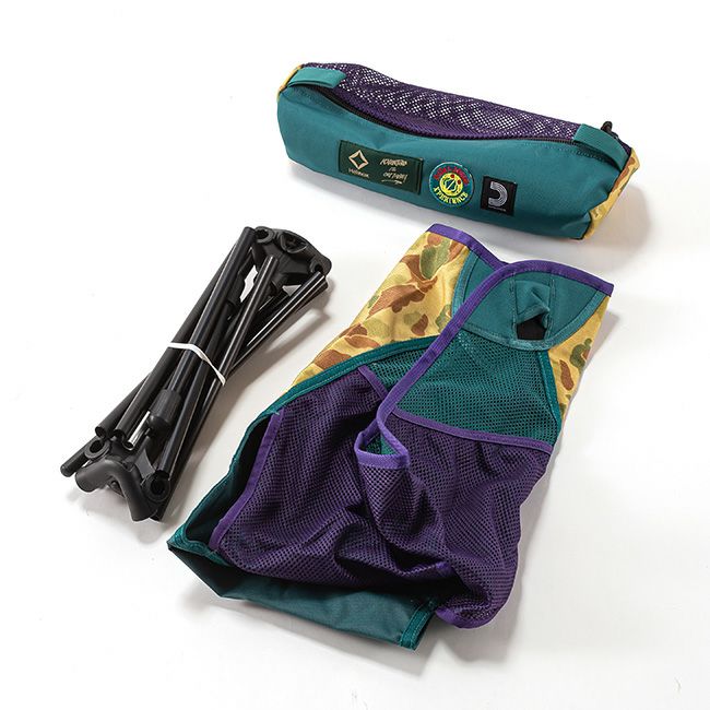90年代のスポーツとアウトドアスタイルを彷彿とさせるレトロなカラーパレットで、パープルとティールグリーンの鮮やかな配色はキャンプサイトに個性と彩りを加えます。