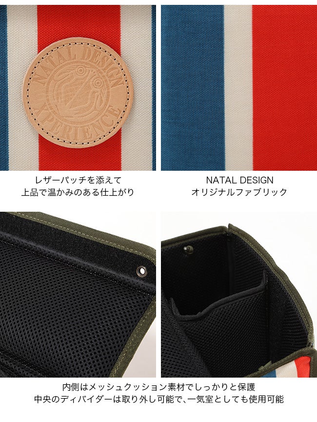 NATAL DESIGNオリジナルファブリックとトリムのコンビネーションに、レザーパッチを添えて上品で温かみのある仕上がりにしました。
