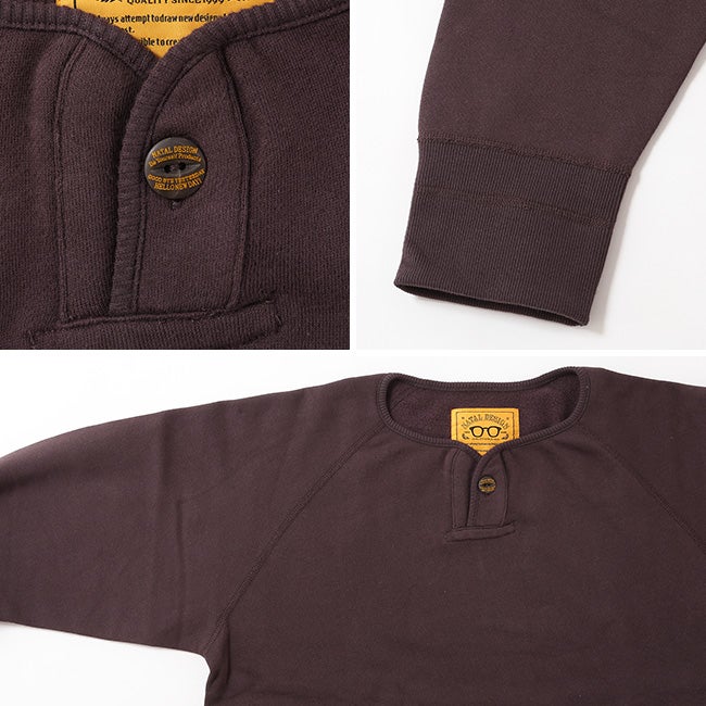 コットン裏起毛素材を使用したロングスリーブヘンリーネックスウェット。