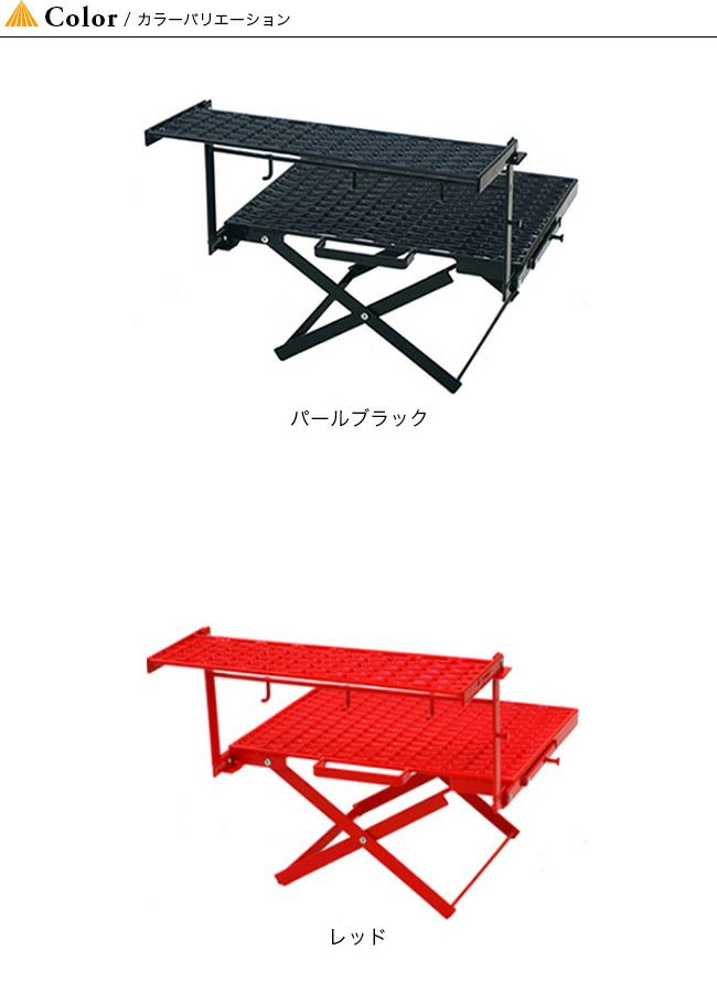 クーラーボックススタンドとして使用する場合、前面に棚板がついておりクーラー内の食材を置いたりコップを置いてクーラー内の飲み物を注ぐのにも便利です。