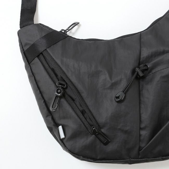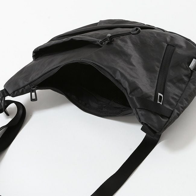 軽量でありながら引張強度と引裂強度に優れたナイロン素材を使用しているため、強度と耐久性があり、通常の平織生地と異なるツイル織りを採用しているため、適度な伸縮性も備えています。