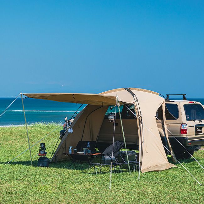 幅広い車種に使えて、設営・撤収が手軽にできる、人気のカーサイドシェルター。