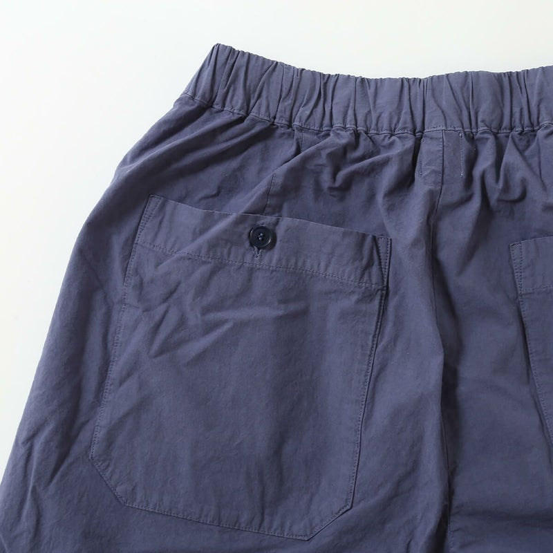 一部強撚糸を使用した40番手のポプリン素材に近江晒加工を施した素材を製品染をしています。製品染めならではの製品のパッカリング感が特徴です。