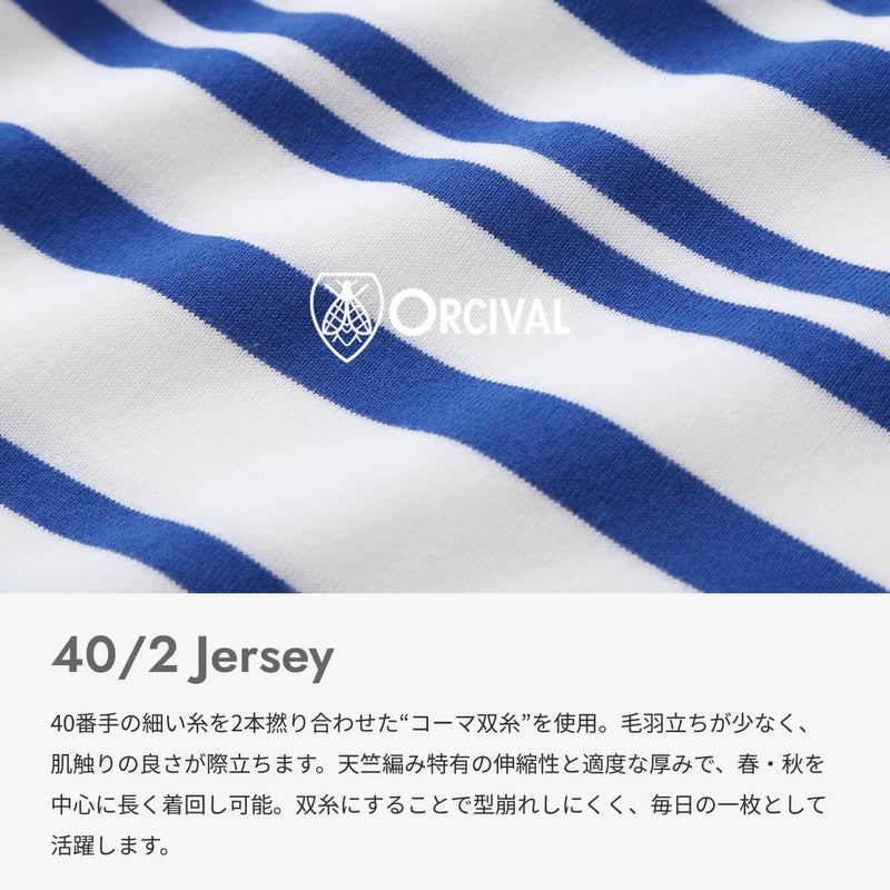 40番手のコーマコットン糸を双糸にした天竺編みのカットソー素材。ピカソが愛用していたバスクシャツのボーダーを模したボーダーピッチを