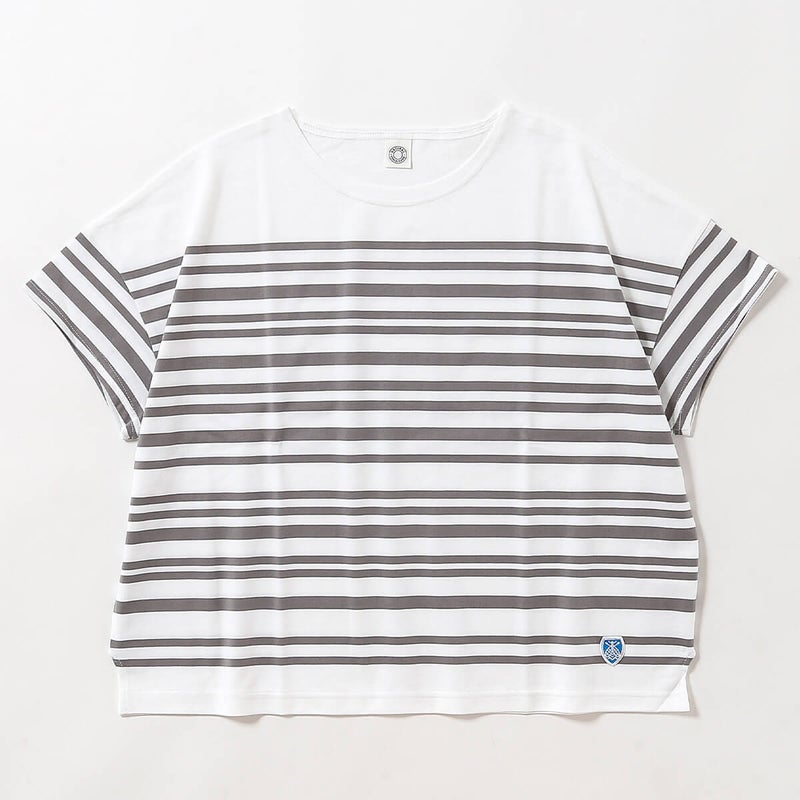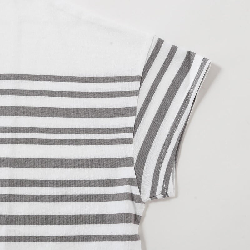 ゆったりとしたボックスシルエットに、コンパクトな袖を組み合わせたバランスが魅力のボーダーカットソー