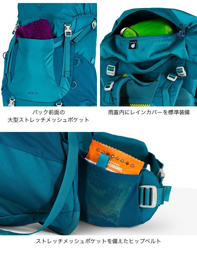 エースは、登山&ハイキングのための機能をフル搭載した子ども向けテクニカルパックのシリーズ。