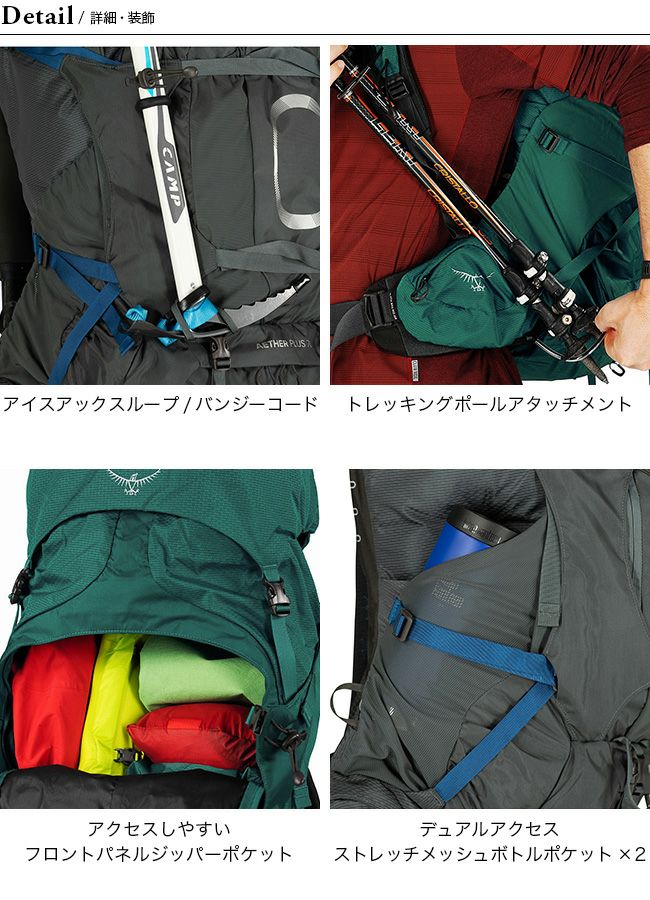イーサープラス60は、山小屋泊の長期縦走や2~3日のテント山行など汎用性の高いモデルです。