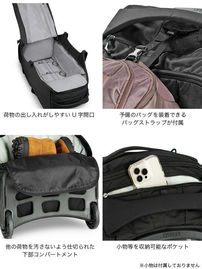 ・他の荷物を汚さないよう仕切られた下部コンパートメントにはブーツなどが収納可能