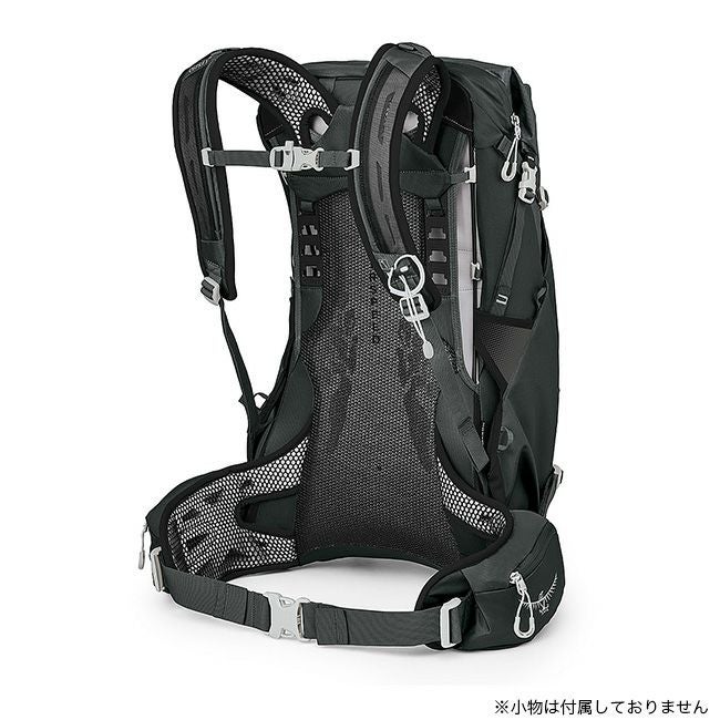メインと背面の間に備えられたハイドレーションスリーブポケットやサイドのボトルポケットなど、メインコンパートメント以外には通気性と撥水性のある生地を使用し、濡れても乾きやすいよう設計されています。