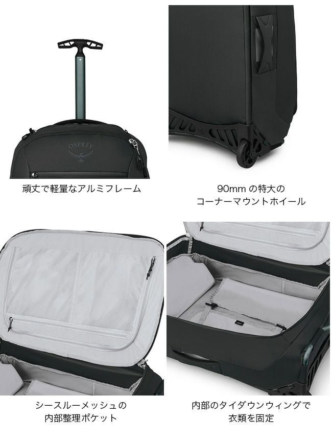 オゾン2ウィールド80Lは、この容量のオスプレートラベルパックの中で最も軽量な2ウィールのキャリーバッグ。