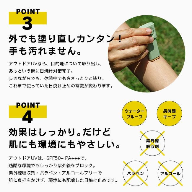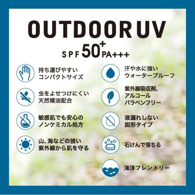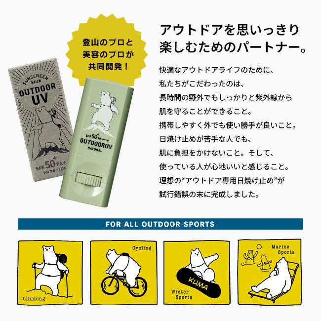 コンパクトで持ち運びに便利な、スティックタイプのアウトドア専用日焼け止め。