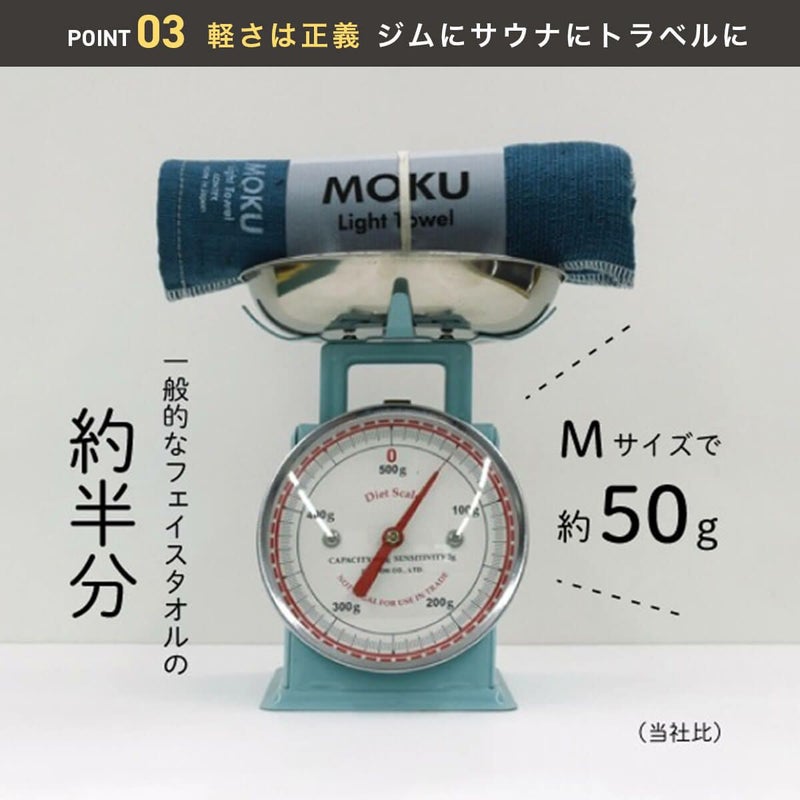 薄くて軽いMOKUですが、吸水力は、綿100%であることに加えて、今治の熟練工が丁寧に不純物を落としているのでしっかり水を吸います。 そして女性やお子様の力でも簡単に絞りきれてしまうので、その吸水力を短時間の間に何度でも取り戻せます。 ある意味、無限に拭くことが出来るので、銭湯・サウナにはMOKU1本で行ってしまうミニマリストの方もいるほどです。