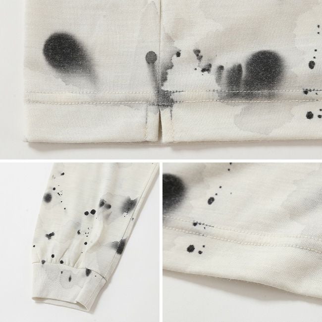墨をスポット状に落とすことで、一枚ごとに異なる風合いを生み出し、機能性だけでなくファッション性も兼ね備えた仕上がりになっています。