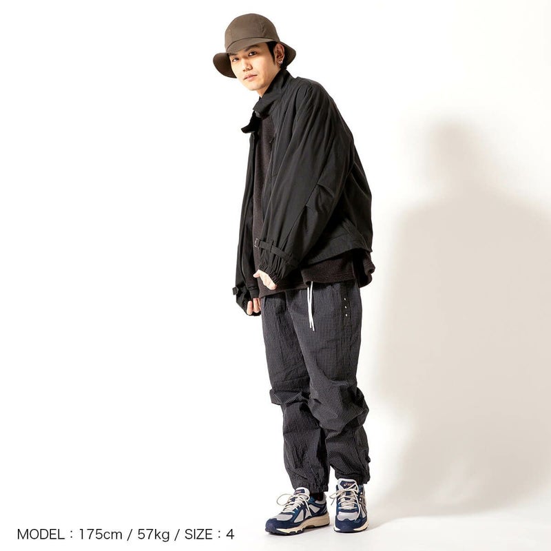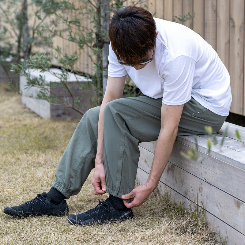 裾は靴を履いたまま脱ぎ着できるファスナースリット仕様で、アウトドアにも最適です。ルーズテーパードのシルエットですが、ファスナーを少し開けて履くことで裾が若干落ちて、好みでシルエットの変化を楽しむことができます。