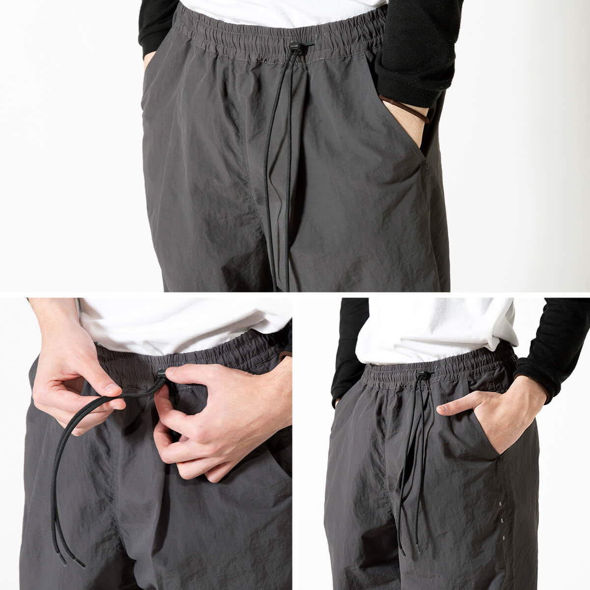 一年を通して快適に使い倒せる最強のナイロンイージーパンツです。