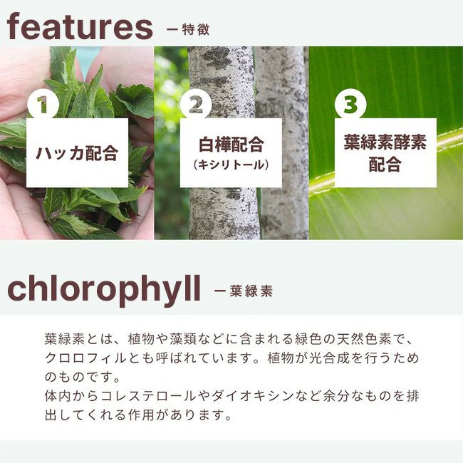■素材:白樺 / ハッカ / 葉緑素
