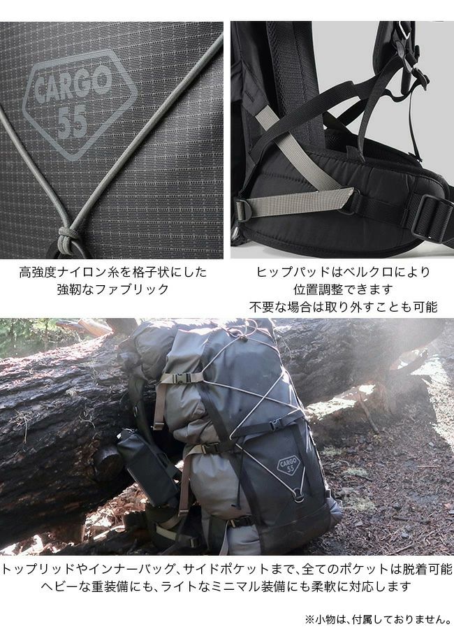 製品版のCARGO55には、大人の事情により多くのオプションポケット(!)が付いていますが、まずは一番シンプルな状態で想像力を働かせてみてください。