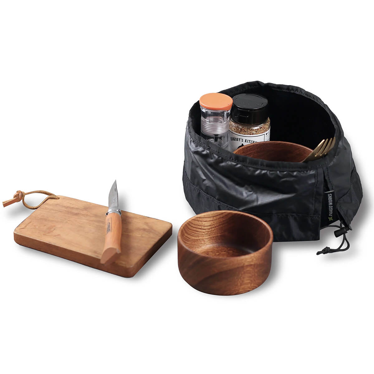 収納袋は自立する仕様で調味料入れやカトラリー入れとしても便利に使えます。