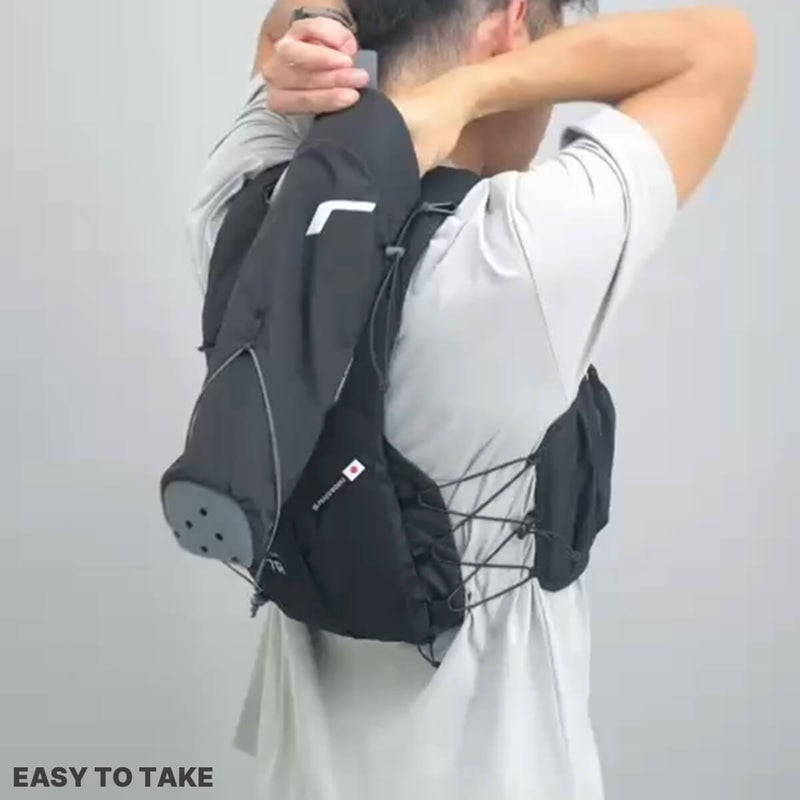走りながらでもワンアクションでポールを簡単に取り出せる設計です。開口部と肩に当たる部分にはフォームを入れたので、揺れや擦れのストレスを軽減しました。