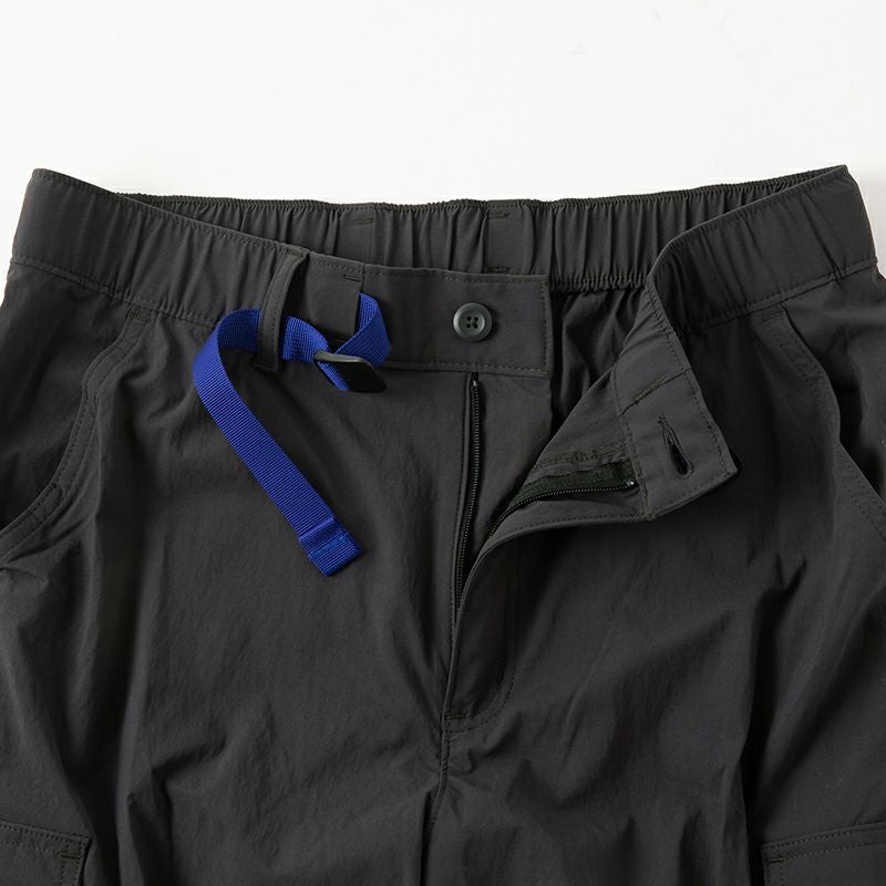 両腿のカーゴポケットはテープ留めフラップ付きで、ウェビングのタブにより使いやすいデザイン