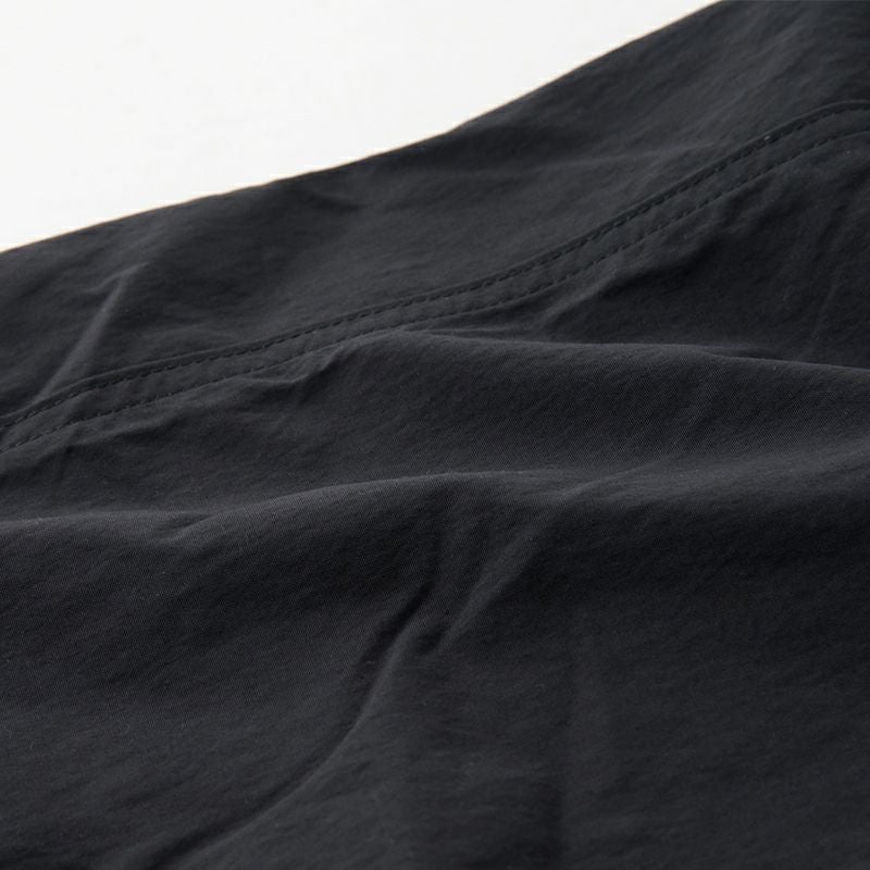 頑丈で多機能的で速乾性を備えた素材は、漁網をリサイクルして海洋プラスチック汚染の削減に貢献する、平織りのネットプラス・ポストコンシューマーリサイクル・ナイロン96%/ポリウレタン4%。PFASを意図的に添加せずに製造されたDWR(耐久性撥水)加工済みで、UPF(紫外線防止指数)40+のUVプロテクションを提供