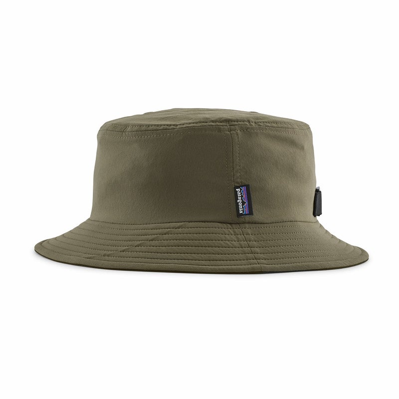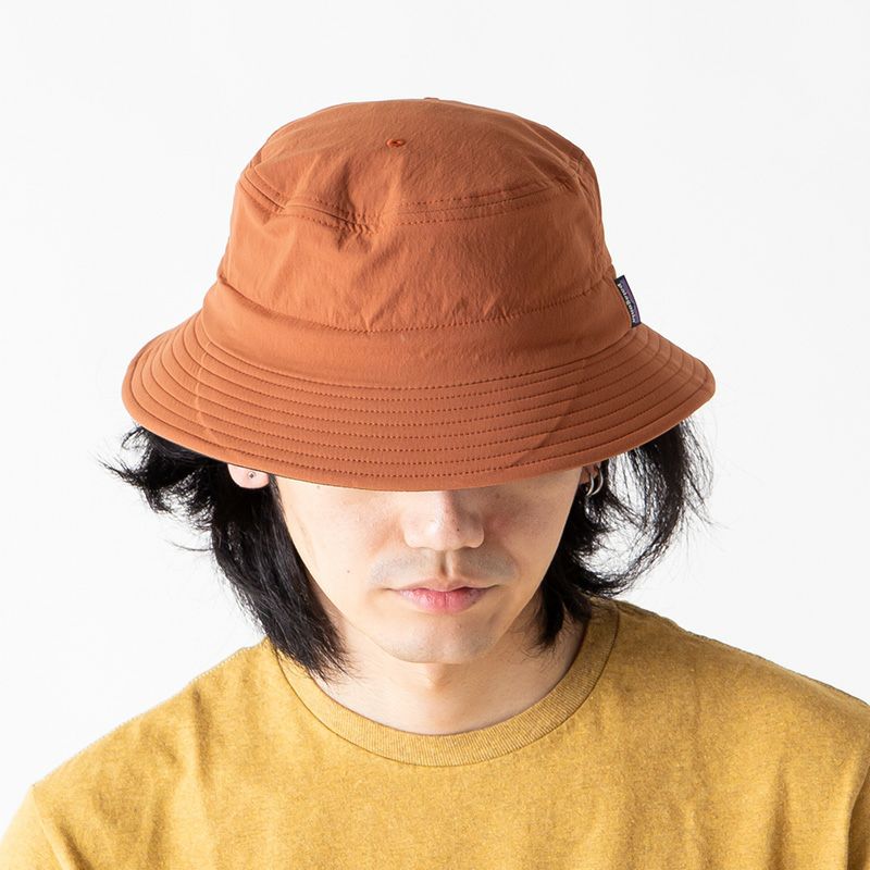 サーフィンでもフィッシングでもビーチでも、水にまつわるお楽しみにしっかりと日除けを提供するつば付きのバケツ型の帽子。