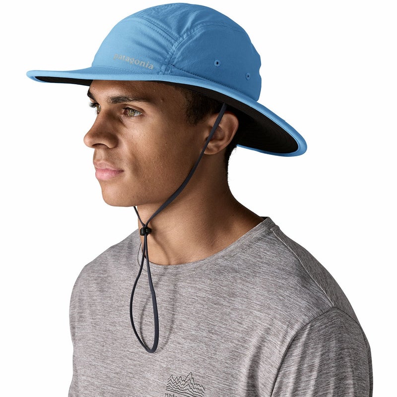照り返しを軽減する幅の広いつばとすばやい吸湿発散性を促進するスウェットバンドを備え、尾根の強風で帽子が飛ばされるのを防ぐトグル付き。