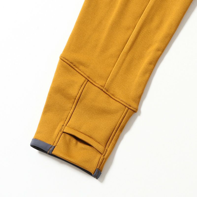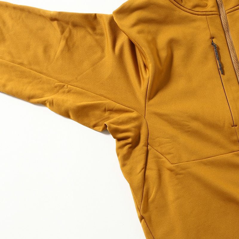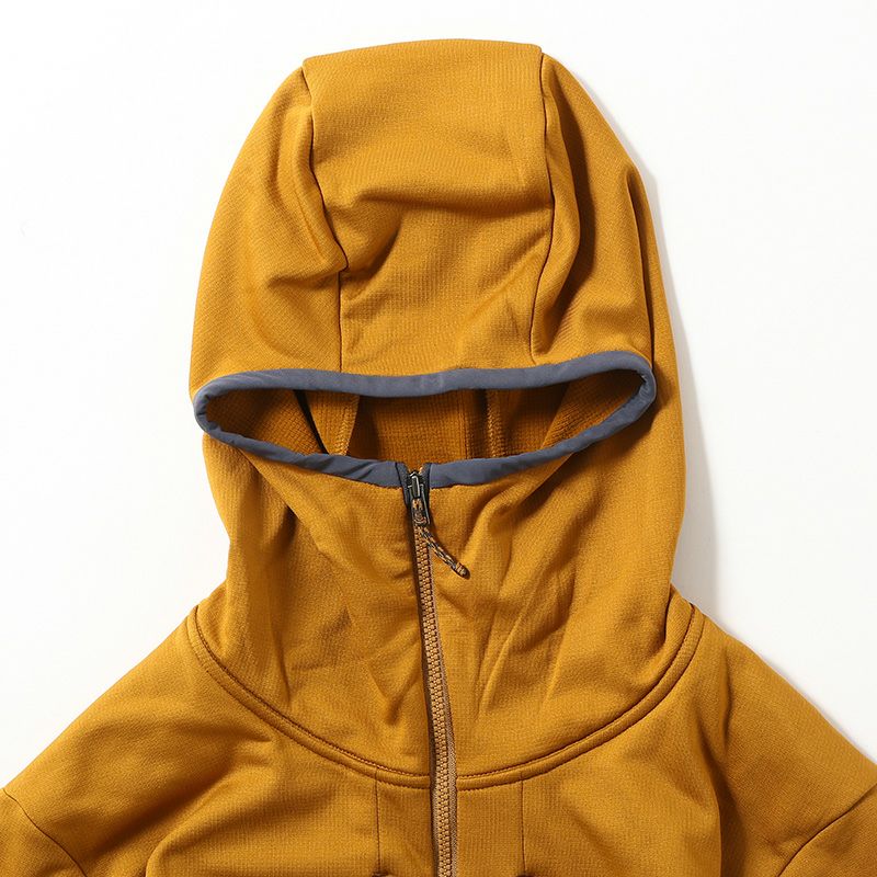 フィット感やストレッチ性もとても良く裏打ちのグリッドフリースの保温性や汗抜けも最高です。 フーディのみにサムホールが付いていて何かと便利です。 冬のミドルレイヤーの一軍になりそうです。