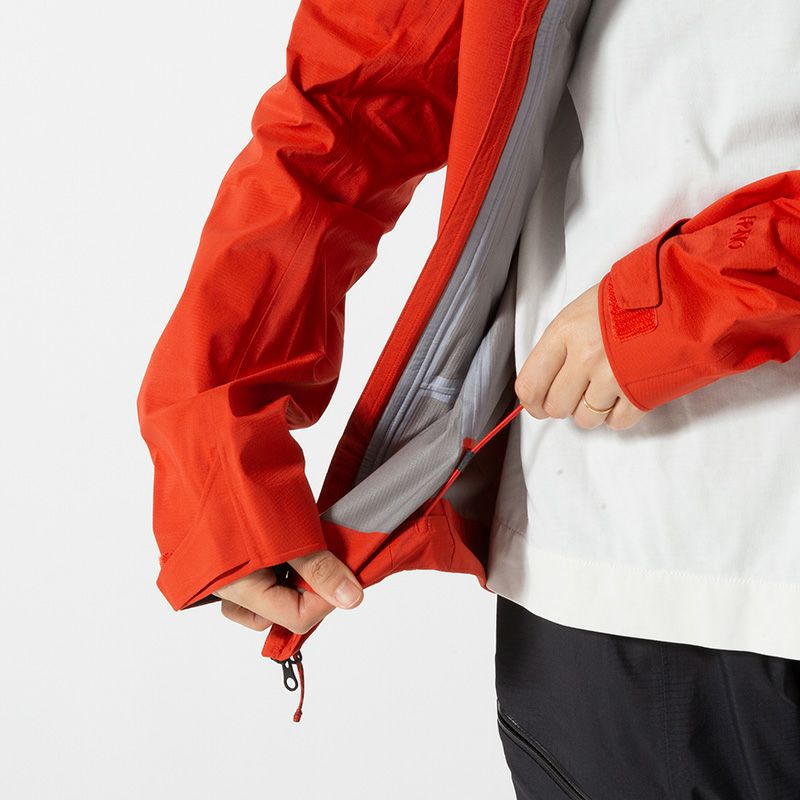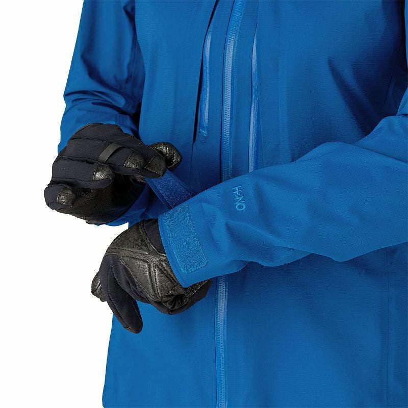 すっきりとした袖口は先細のタブとテープで留められ、質感のあるポリウレタンのインナーカフスが手首や手袋にしっかりとフィットするのでツールを振る際も袖を固定。2か所で調節可能なドローコード付きの裾は外気を遮断