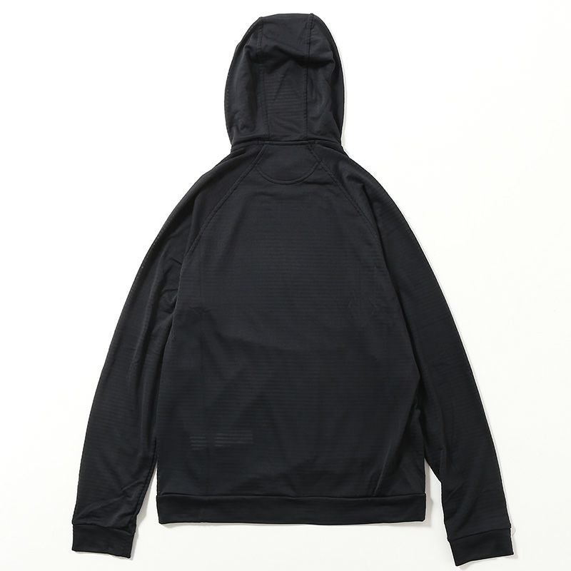 通気性を備え、寒いコンディションでは保温性を提供するフーディ。