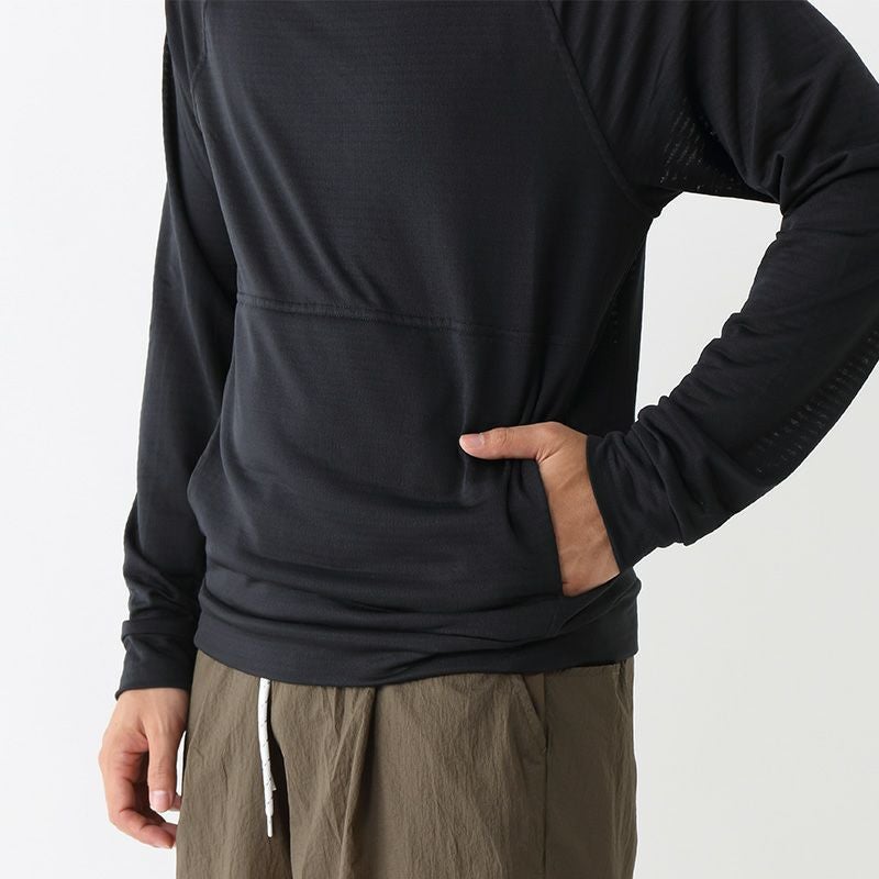 レイヤリングしやすい滑らかな表面を備えたポーラテック・パワー・グリッド素材。ハイキュ・ピュア防臭加工済み。オープングリッド構造により吸湿発散性と通気性と保温性を提供