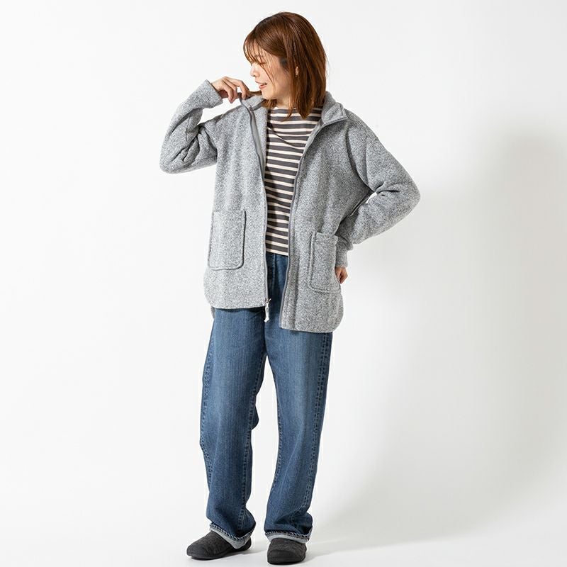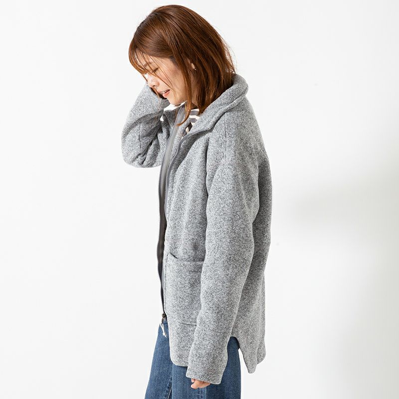 丈夫なリサイクル・ポリエステル100%素材のフリースにはニュートラルカラーを採用し、クローゼットの定番となること間違いなし。