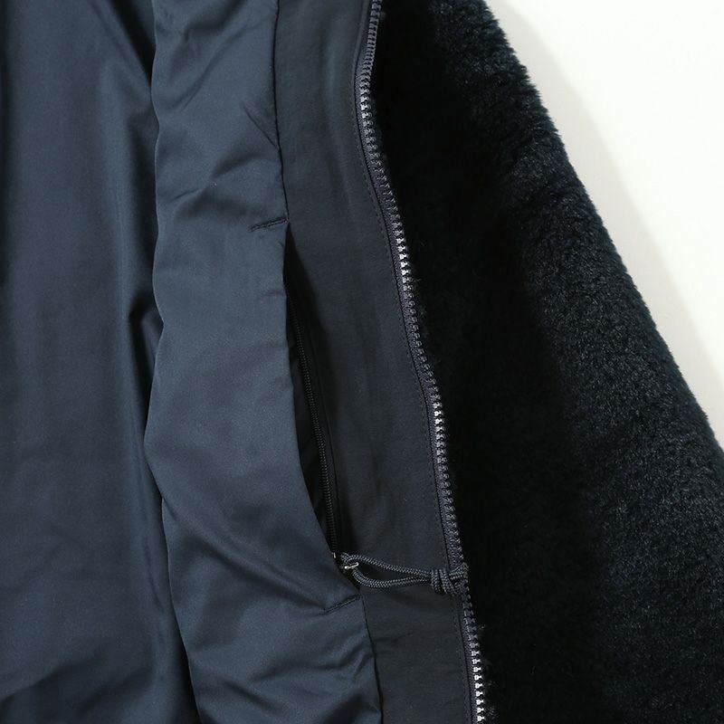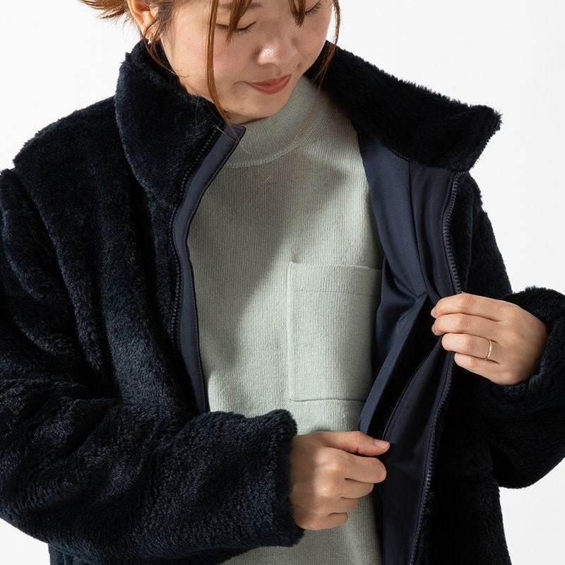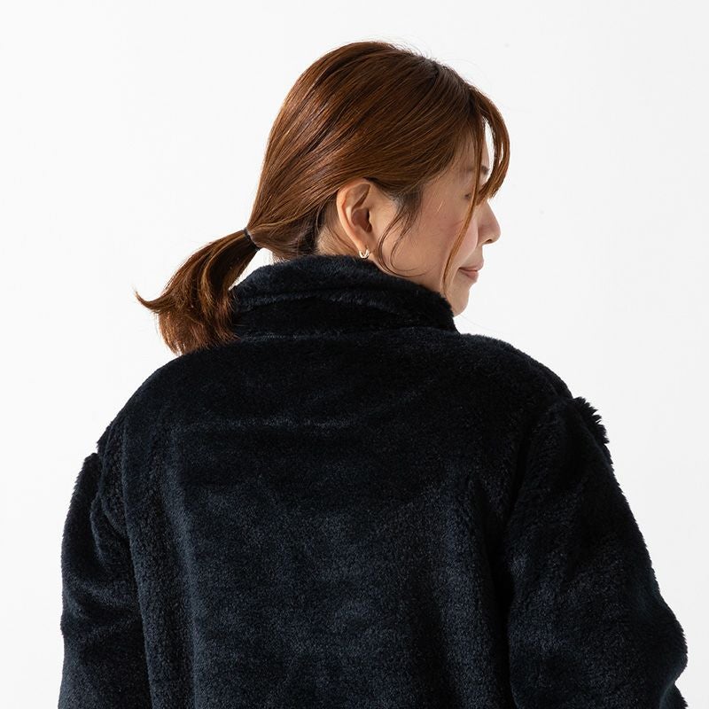 両面にフリースを施したスタンドアップカラーは快適で保温性を向上