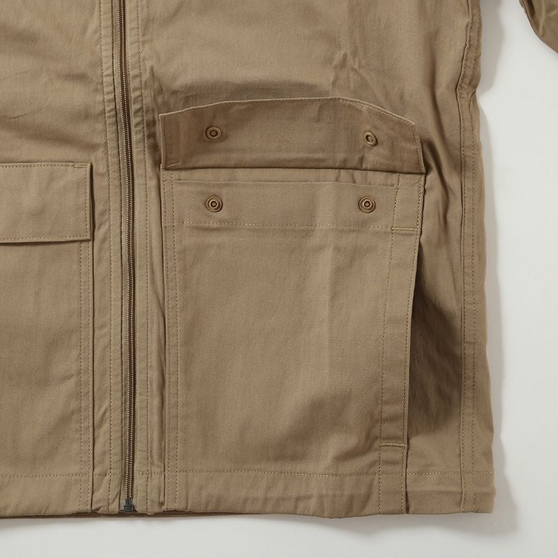 上と横からアクセスできるスナップ留めのパッチ型ポケットが2つ