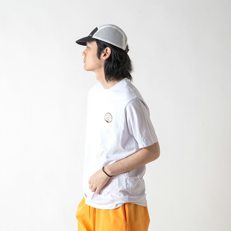 それをプリントしたリサイクル素材のこのTシャツは、端切れと回収されたペットボトルを利用することによりバージン原料への依存を削減。