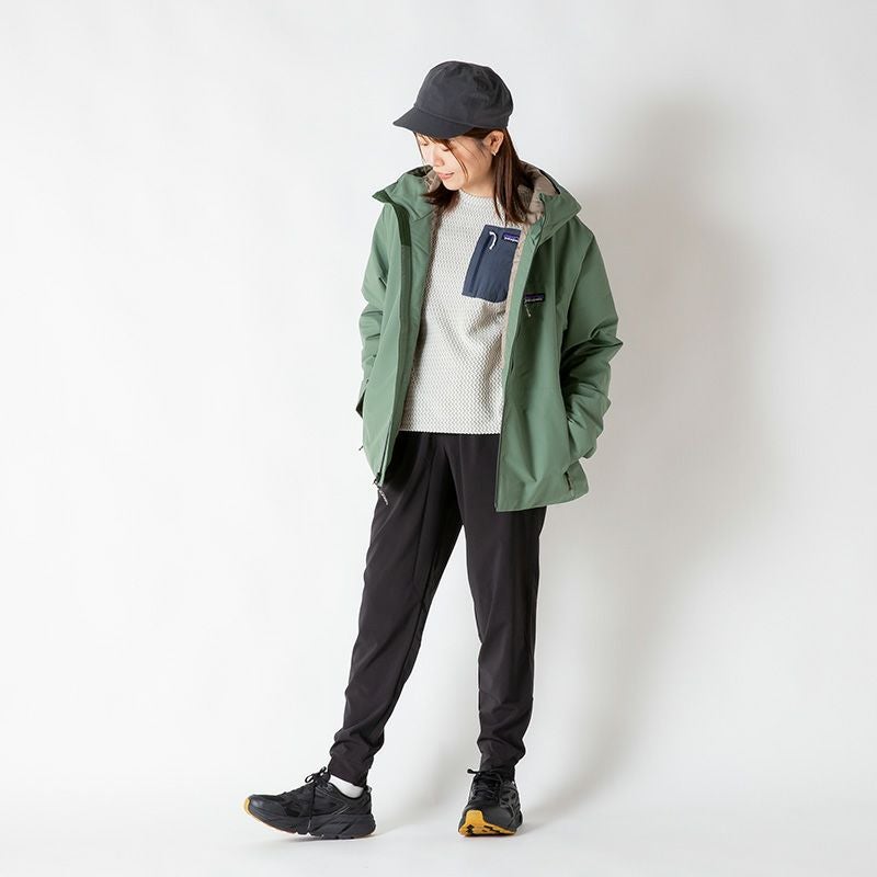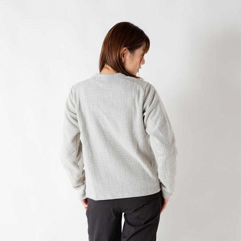本体はリサイクル・ポリエステル100%素材の中空糸を使用したジャカード・フリースで、冷涼な天候下のアクティビティに吸湿発散性と速乾性と優れた通気性を提供
