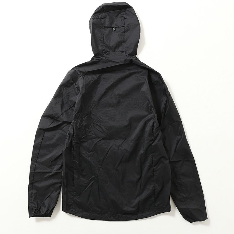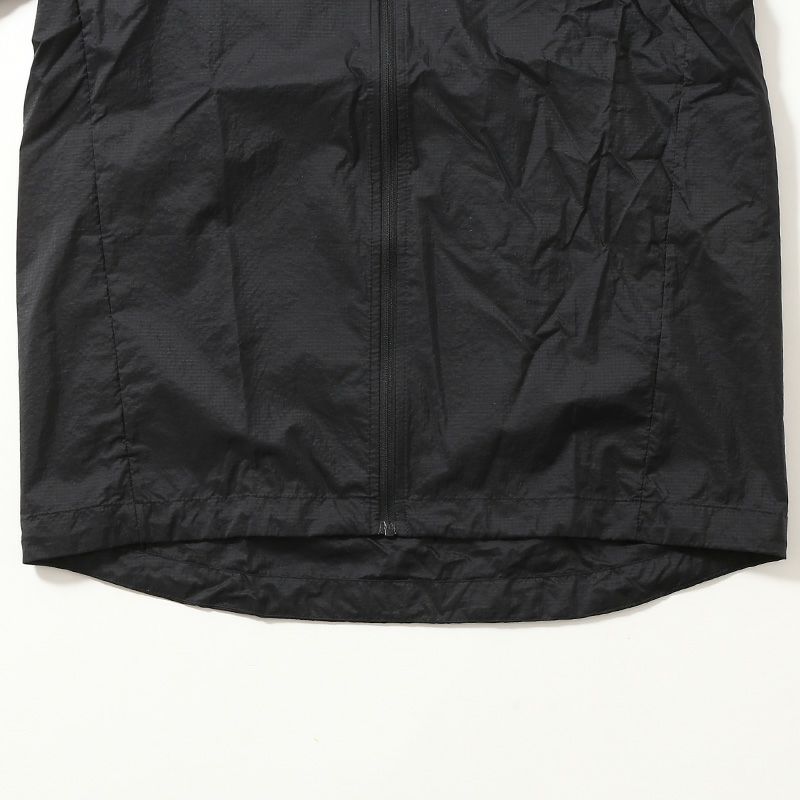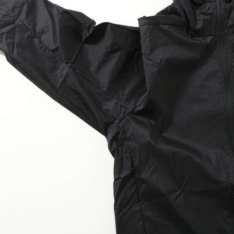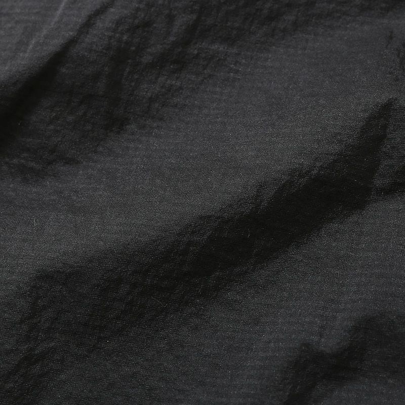シェルには超軽量なリサイクル・ナイロン100%素材のリップストップを使用し、軽度の水分を弾くDWR(耐久性撥水)加工はPFASを意図的に使用せずに製造