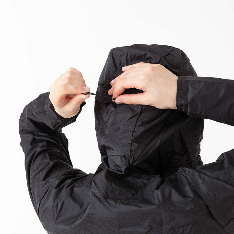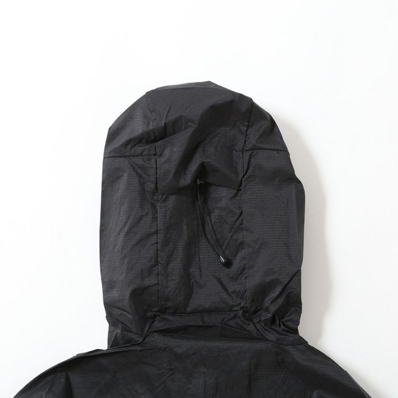 汎用性が高い商品です。速乾性もあり小雨程度であれば凌げます。キャップの上からでもフードがかぶれるため、強風のときにもキャップが飛んでいく心配がなくノンストレスです。