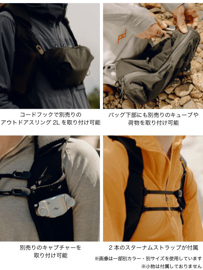 ピークデザイン製ウルトラライトパッキングキューブを取り付けることもでき、モジュールシステムの可能性が広がります。