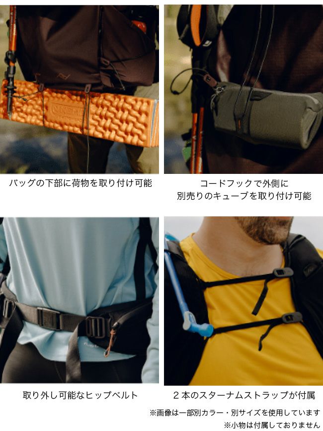 ピークデザイン製ウルトラライトパッキングキューブを取り付けることもでき、モジュールシステムの可能性が広がります。