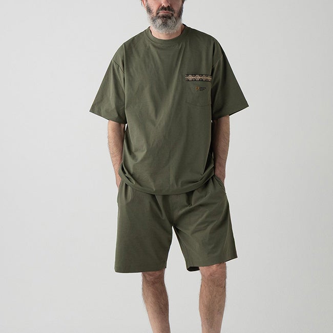 Tシャツの胸元とショーツの背面ポケットには、ペンドルトンならではの印象的なネイティブ柄があしらわれているのが特徴的です。