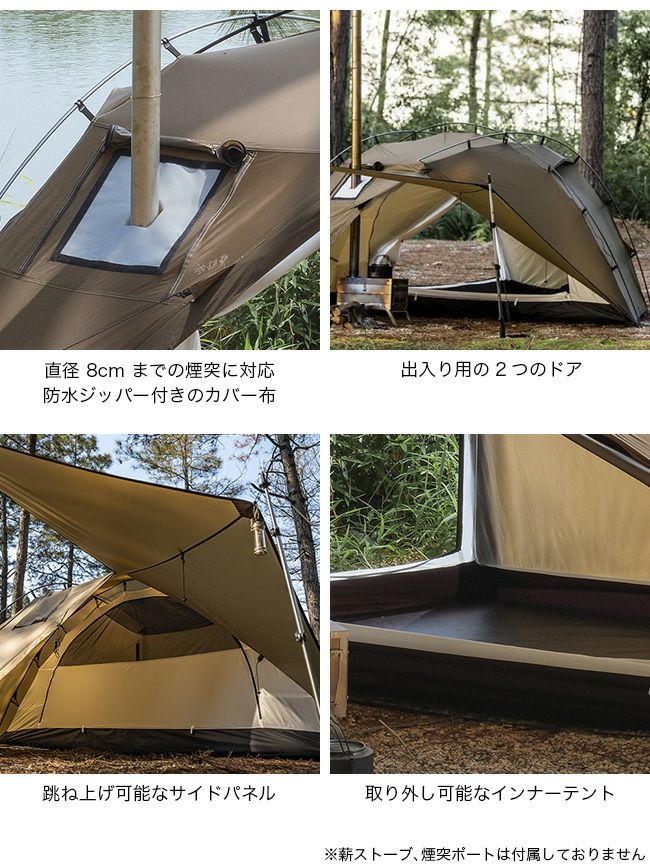 テントの煙突ポートは直径8cmまでの煙突に対応しています。